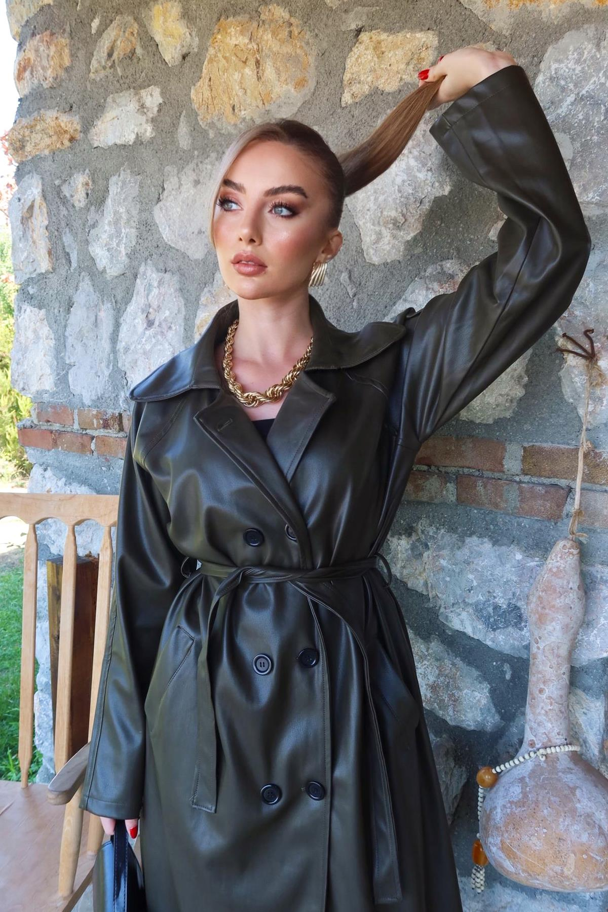 Kuşaklı Deri Trençkot