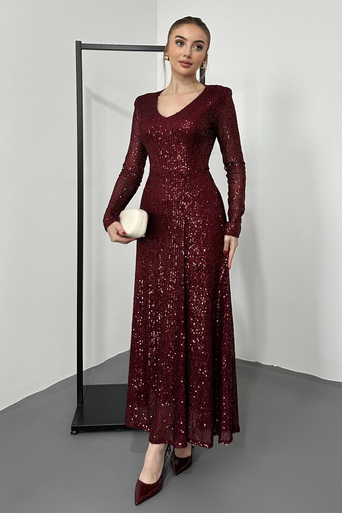 Sırt Dekolteli Pulpayet Elbise (7931)