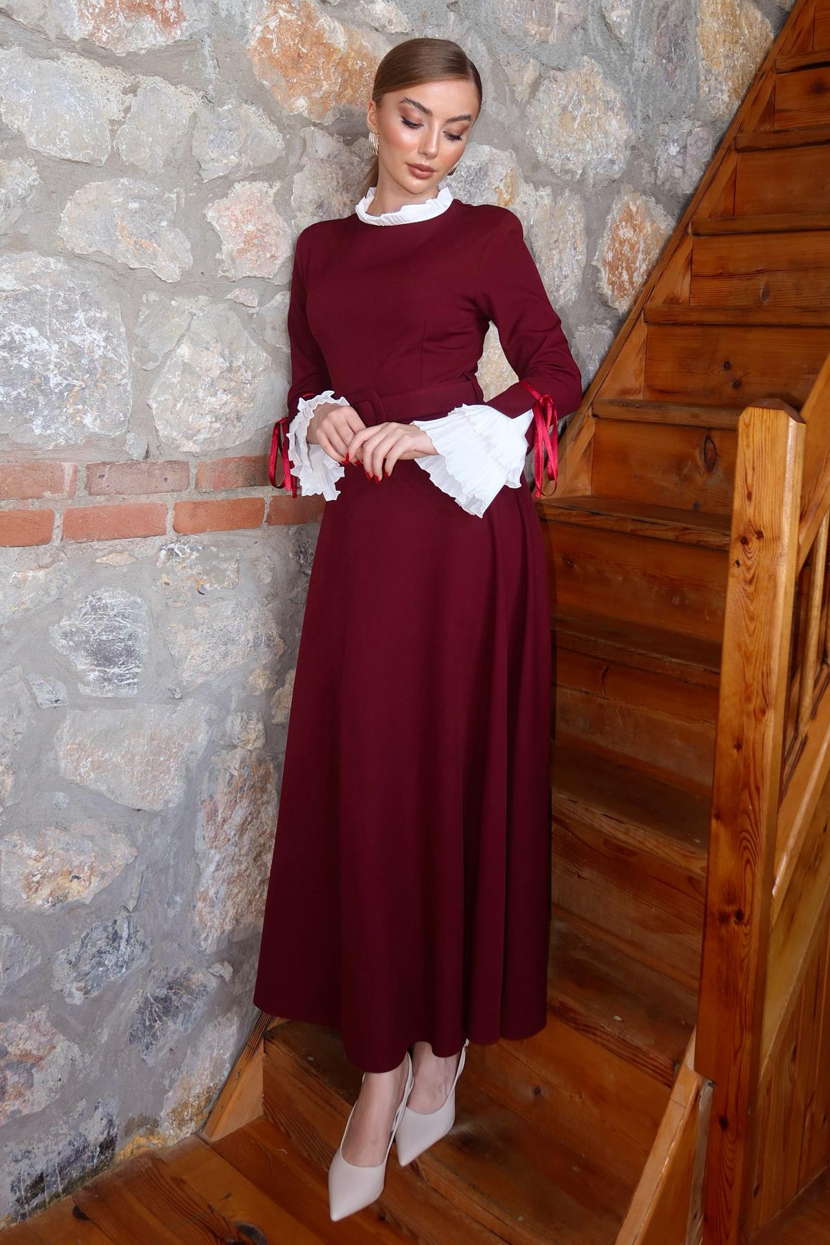Yaka ve Kol Detaylı Kemerli Elbise (8201)